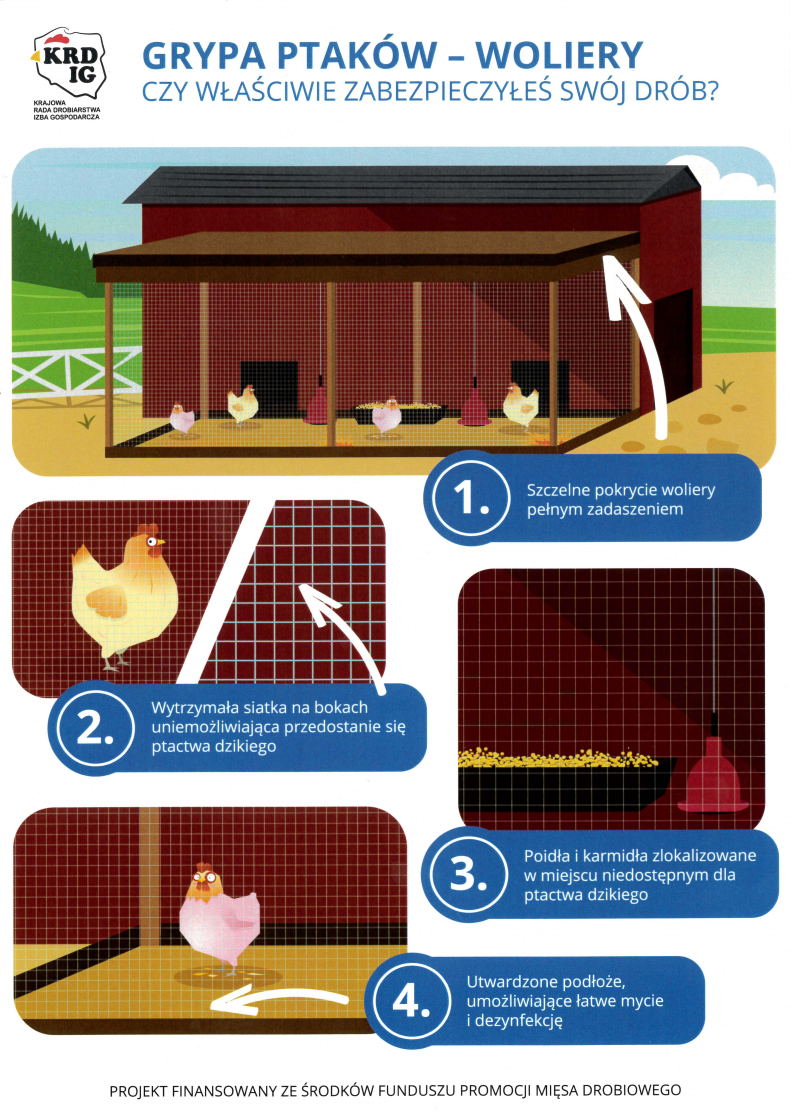 „ZASADY BIOASEKURACJI – WOLIERY. Czy właściwie zabezpieczyłeś swój drób?” opracowane przez Krajową Radę Drobiarstwa – Izbę Gospodarczą.